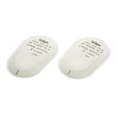 Particle filter with Dräger-specific bayonet-type connector to be used with twinfilter half masks X-plore 3000 and twinfilter full facepieces X-plore 5500.
