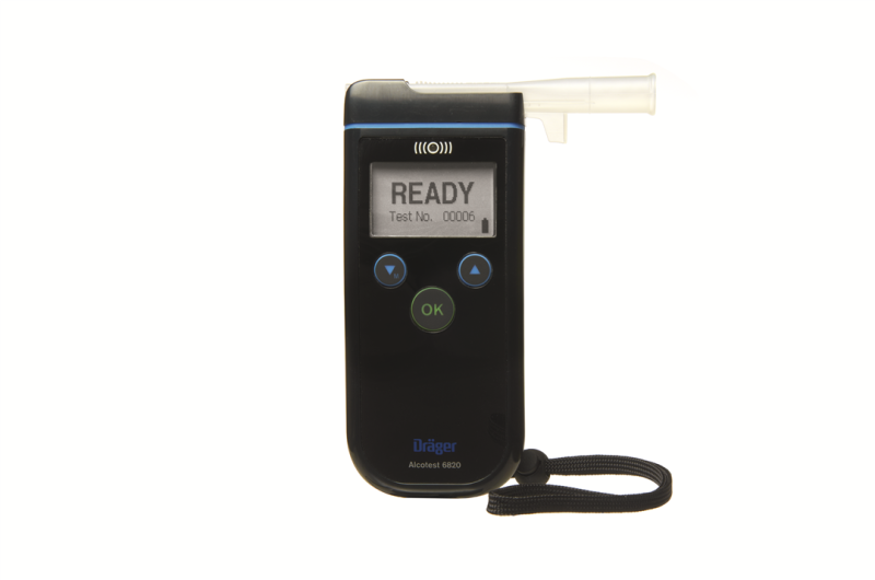 Breath alcohol measuring device set to English language with measuring unit mg/L. The instrument offers further languages such as German, French and Spanish selectable within the device menu. Scope of delivery: Measuring device with transportation case and 3 mouthpieces, mouthpiece adapter Slide'n'click (type A) attached, mouthpiece adapter (type B) enclosed, hand strap, instructions for use in the 4 languages, dimensions 65x147x39 mm (WxHxD), weight approx. 260 g, color black