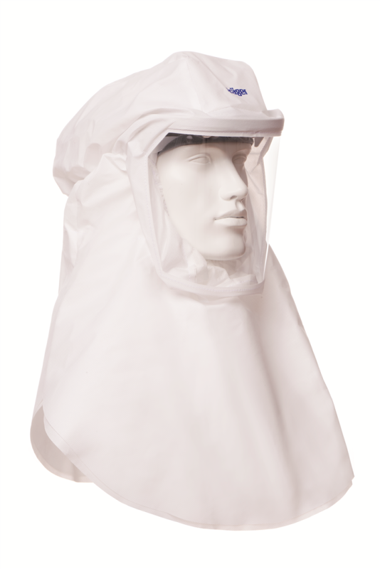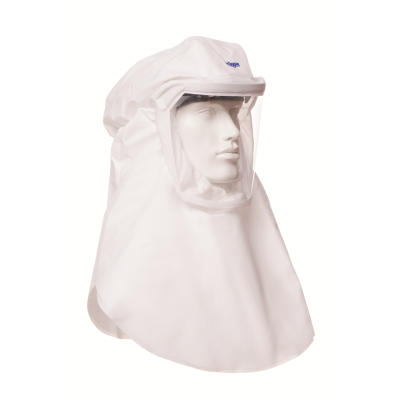 Head piece for use with the Powered Air Purifying Respirator Dräger X-plore 8000 and for the Air Line System Dräger X-plore 9300. The hood is made from a light weight, soft, low-noise material. It has a good, stable and comfortable fit even when user is moving due to optimized design. The spacer on top of the visor gives the visor a defined curvature and therefor low distortion. The hood offers complete protection for head, face and neck area and is suitable for people wearing glasses and beards. The long hood features a double layer bib. If necessary, the lower layer of the bib can be put into the protective clothing. The hoods themselves are approved according to EN 166:2002-04. In combination with Dräger X-plore 8000 approved according to EN 12941: 2009, protection level TH3. In combination with Dräger X-plore 9300 approved according to EN 14594:2005.